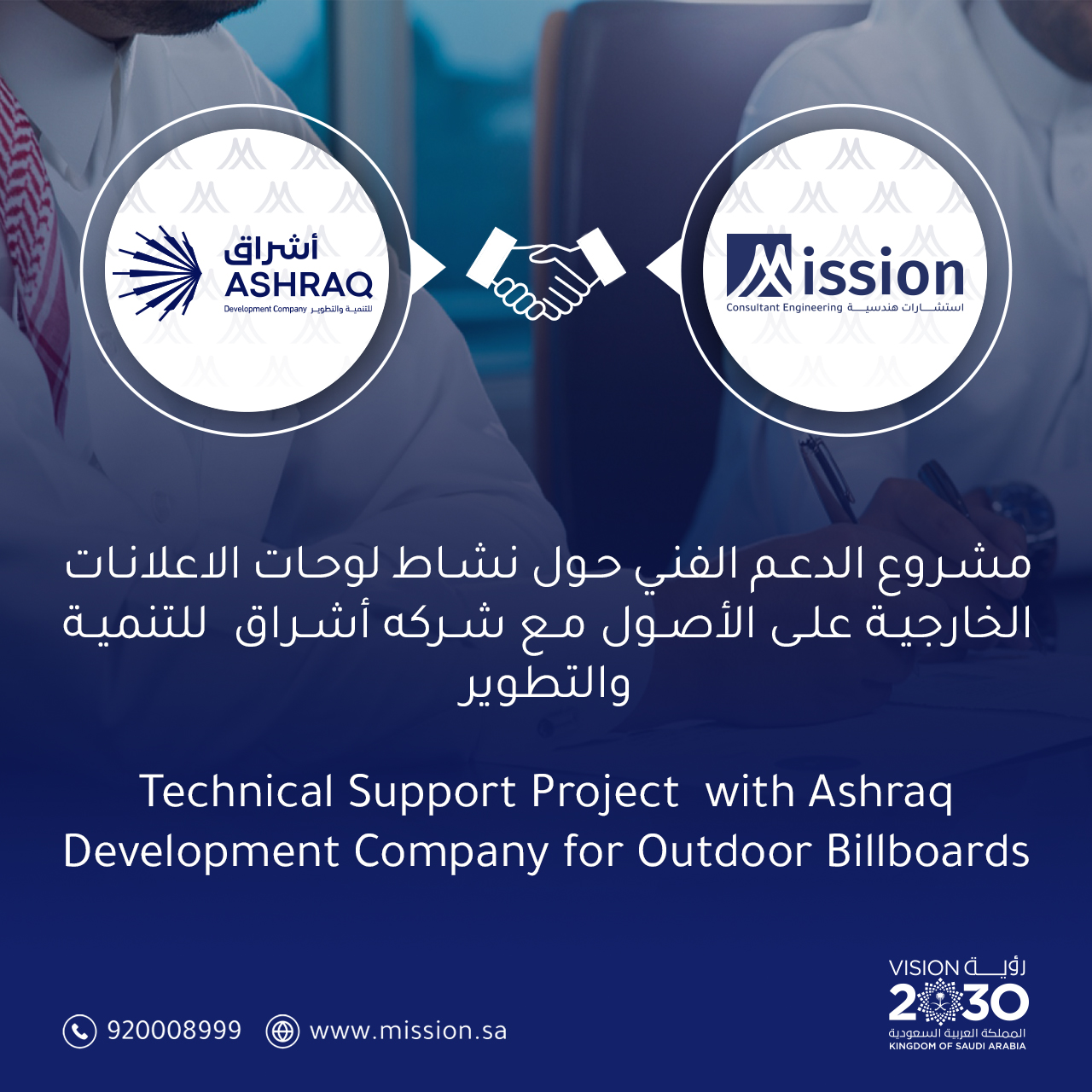 We are pleased to announce the official appointment of Mission as the authorized engineering consultant to oversee all installation, operation, and maintenance works for advertising billboards of Eshraq Development & Investment Company in the Eastern Province.